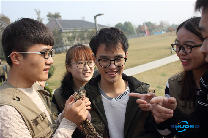 首先是“盲人方陣”。考驗如何在信息不充分的條件下尋找出路,大家耗用時間最長、最混亂、所有人最焦慮的時候是在領導人選出、方案確定之前,當領導人產生、有序的組織開始運轉的時候,大家雖然未有勝算,但心底已坦然了許多。而行動方案得到大家的認同并推進,使員工們在同心協力中初嘗著勝利的喜悅。來看一下我們碩博的“盲人方陣”,一開始要求規則比較低,大家連隊形都排好了然后就拿好繩子,才蒙上眼睛,基本上半分鐘都可以完成的大家覺得太簡單,于是修改了一下規則,先蒙上眼睛排成一隊,再給繩子,開始計時。然后混亂的時刻就發生了,有些隊員蒙上眼睛,就忘了之前的隊長說的戰略,然后蒙上眼睛的隊長繞繩子就發生了混亂的一幕。后邊還有出界的,提前開始等犯規情況,大家都不作數。果然蒙上眼睛,就是不習慣。接著只好再來一組加時賽,結果藍隊和粉隊都因為形狀不夠正方形而并列第二。