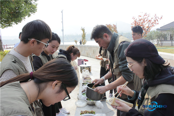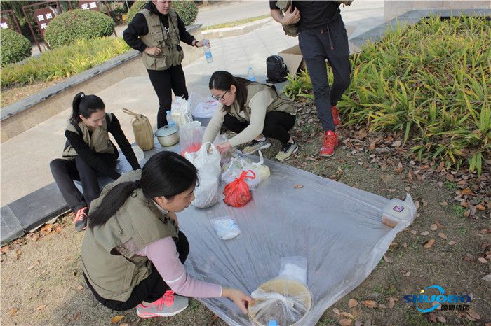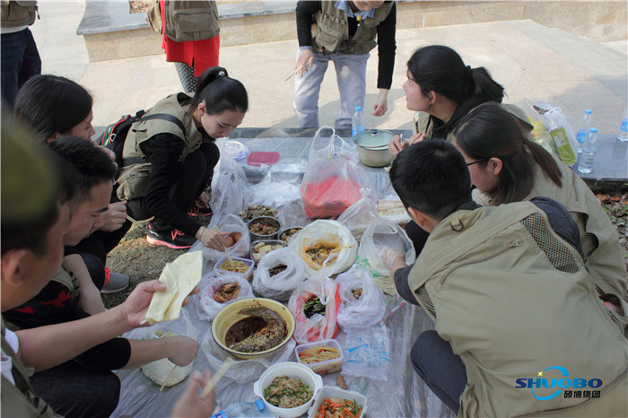 不知不覺就到了午飯時間,沿襲歷史,每隊12人240元經費,隊長安排自理,由于時間充分,加上上一次的經驗,大家準備的還是很充裕的,沒有上一次拓展時某隊只有煎餅和醬這種局面。