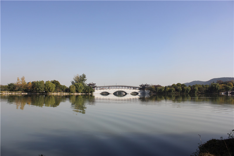 蘇公島是2006年在小南湖修建的一個小島,蘇公島北與南湖別苑銜接,東與鳴鶴洲相通,以東坡文化為主題,將湖面分為蘇公文苑景區、蘇公雕像景區、東坡足跡景區、醉月壇景區。此時的蘇公島,正值深秋時節,由于種植的是一些長青的植物,倒是沒有蕭瑟凄涼之感,秋天是收獲的季節,正如現在的我們,經過一年的努力,快到了檢驗成果的時刻。