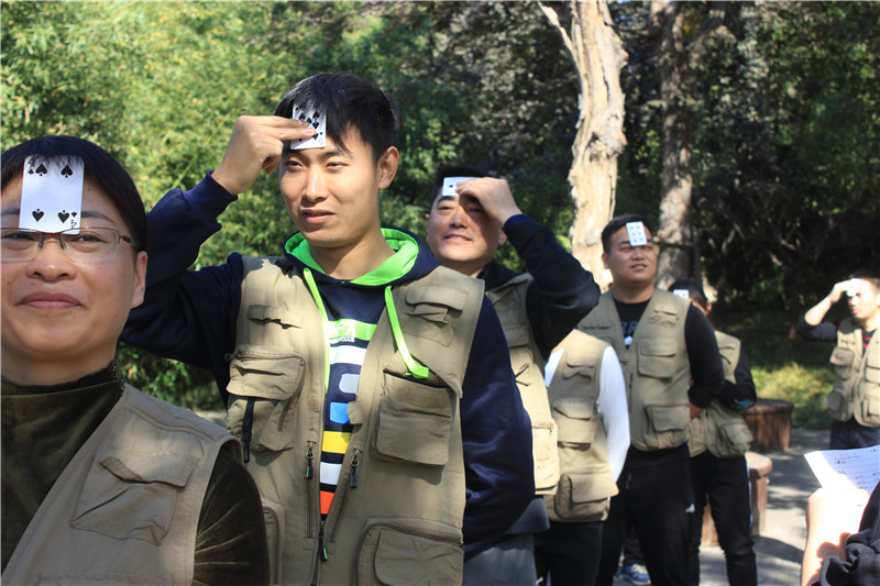 公司員工通過組織人員抓鬮分為三組,活動主要圍繞消除隔閡、團隊協作、相互信任、組織分工等幾個方面來進行,首先是團隊破冰,每組人員站一排,介紹自己和自己前面的所有人。開始只是介紹姓名、部門還是很簡單的,接著,還要記住前面所有人的撲克牌數字,數字是隨機的,這時候大家想的都是怎么作弊,也有人是用心記住前面每個人介紹時說的話,用心記住的時候,心思不在投機上,正確率也會上升。