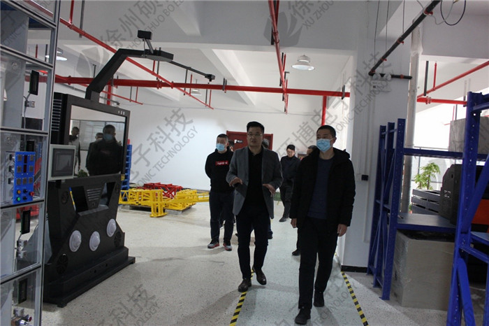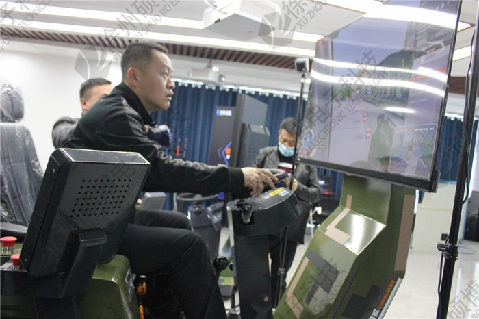 徐處長一行在我司劉總的陪同下,先后參觀我司生產部車間、公司企業文化、榮譽資質、軟件在研項目、虛擬仿真設備展廳,并給與了高度的肯定,特別是生產部的6S管理的施行,國產系統下軍用仿真軟件的研發,高仿真的視覺效果,豐富的實操課題,多臺設備的協同演練,指揮端的高效實時反饋系統,以及硬件高度仿真真機操作,給與了高度的評價。碩博研發團隊一直致力于不斷增強仿真產品的沉浸感和仿真度,不斷提高仿真模擬器的實用性和復用率,達到部分可替代真機的效果,而不是空有噱頭。徐處長一行親自操作體驗了高速輪式挖掘機模擬器、推土機模擬器、以及充氧車VR仿真模擬器等軍用仿真設備,對于設備的仿真度贊不絕口。