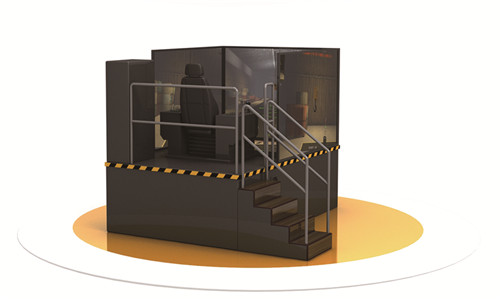駕駛室系統(tǒng)采用真實(shí)的操作臺(tái),包括一套完整的操作臺(tái)(內(nèi)含各種操作手柄、開關(guān)、功能按鈕、護(hù)欄、以及司機(jī)座椅等),其原來的玻璃窗口用視景系統(tǒng)的投影屏幕替代,通過“窗口”可以看到從高性能投影儀投放在屏幕上的視景景象和操作情況。音響系統(tǒng)可以產(chǎn)生實(shí)際作業(yè)中的各種聲音(如電動(dòng)機(jī)起、制動(dòng),大、小車運(yùn)行,貨物撞擊,車間環(huán)境聲音等等)以及各種現(xiàn)場(chǎng)聲響。